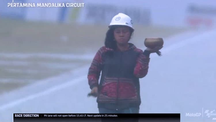 TIMES Bukit Tinggi/Raden Rara Isti Wulandari, sang pawang hujan saat Sirkuit Mandalika, Lombok Tengah, NTB, Minggu (20/3/2022) (FOTO: t-2.tstatic.net)